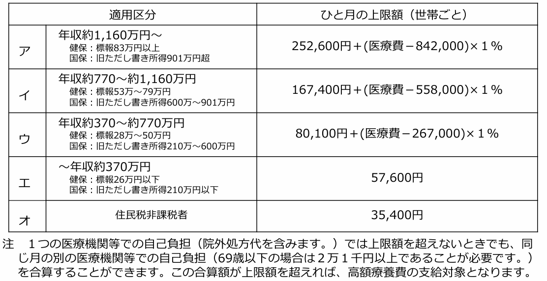 自分の自己負担上限額がどれくらいかを把握しておけば、万一の場合に自分が支払支払うのがどのくらいかわかります。